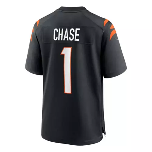 The Nike Cincinnati Bengals Ja’Marr Chase #1 Game Jersey is just what you need to cheer your team onto victory this season. Made from polyester material, this Ja’Marr Chase Jersey is durable and machine washable for easy care and long-lasting wear. The side mesh panels promote greater ventilation when the game gets close, while the screen-printed name, numbers, and logos on this Ja’Marr Chase Jersey ensure lightweight comfort for all-day wear. Additional features include a woven jock tag, tagless neck label, and stitched NFL shield to complete your game-day look!