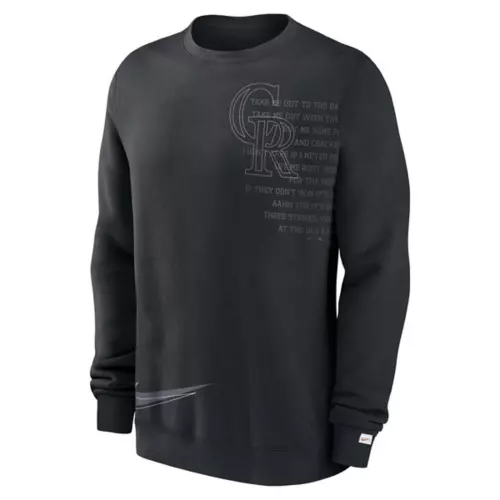 For an extra layer when the temperatures drop, wear the Nike Colorado Rockies Statement Crew. With Colorado Rockies colors and graphics, you’ll be able to show off your team pride throughout the entire season and year. Made with soft fabric, you’ll stay comfortable throughout the whole game in the Nike Colorado Rockies Statement Crew.