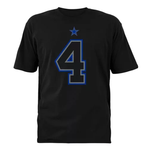 Show everyone who you root for with the Nike Dallas Cowboys Dak Prescott #4 Alternate Name & Number T-Shirt. Featuring Dallas Cowboys graphics and colors, you’ll be ready to cheer your favorite NFL team to victory. Whether you’re heading to the game or just want to show off your favorite team, this Dallas Cowboys top will leave no doubt where your loyalty lies. Wear your team’s colors and show off your pride with the Nike Dallas Cowboys Dak Prescott #4 Alternate Name & Number T-Shirt.