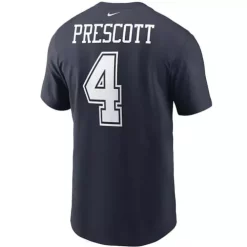 Show everyone who you root for with the Nike Dallas Cowboys Dak Prescott #4 Name & Number Player T-Shirt. Featuring Dallas Cowboys graphics and colors, you’ll be ready to cheer your favorite NFL team to victory. Whether you’re heading to the game or just want to show off your favorite team, this Dallas Cowboys top will leave no doubt where your loyalty lies. Wear your team’s colors and show off your pride with the Nike Dallas Cowboys Dak Prescott #4 Name & Number Player T-Shirt.