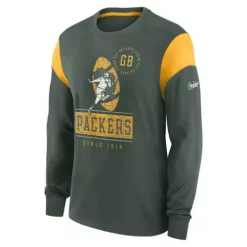 Show everyone who you root for with the Nike Green Bay Packers Helmet Long Sleeve Shirt. Featuring Green Bay Packers graphics and colors, you’ll be ready to cheer your favorite NFL team to victory. Whether you’re heading to the game or just want to show off your favorite team, this Green Bay Packers top will leave no doubt where your loyalty lies. Wear your team’s colors and show off your pride with the Nike Green Bay Packers Helmet Long Sleeve Shirt.