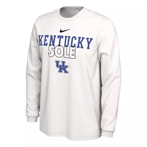 Show everyone who you root for with the Nike Kentucky Wildcats Bench Sole Long Sleeve Shirt. Featuring Kentucky Wildcats graphics and colors, you’ll be ready to cheer your favorite College team to victory. Whether you’re heading to the game or just want to show off your favorite team, this Kentucky Wildcats top will leave no doubt where your loyalty lies. Wear your team’s colors and show off your pride with the Nike Kentucky Wildcats Bench Sole Long Sleeve Shirt.