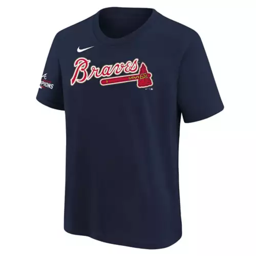 Show everyone who you root for with the Nike Kids’ Atlanta Braves Ronald Acuna Jr #13 Gold Wordmark T-Shirt. Featuring Atlanta Braves graphics and colors, you’ll be ready to cheer your favorite MLB team to victory. Whether you’re heading to the game or just want to show off your favorite team, this Atlanta Braves top will leave no doubt where your loyalty lies. Wear your team’s colors and show off your pride with the Nike Kids’ Atlanta Braves Ronald Acuna Jr #13 Gold Wordmark T-Shirt.