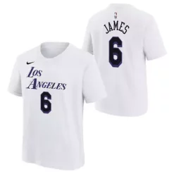 Nike Kids’ Los Angeles Lakers LeBron James #6 2022 City Edition Name & Number T-Shirt