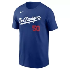 Show everyone who you root for with the Nike Los Angeles Dodgers Mookie Betts #50 City Connect Name & Number T-Shirt. Featuring Los Angeles Dodgers graphics and colors, you’ll be ready to cheer your favorite MLB team to victory. Whether you’re heading to the game or just want to show off your favorite team, this Los Angeles Dodgers top will leave no doubt where your loyalty lies. Wear your team’s colors and show off your pride with the Nike Los Angeles Dodgers Mookie Betts #50 City Connect Name & Number T-Shirt.