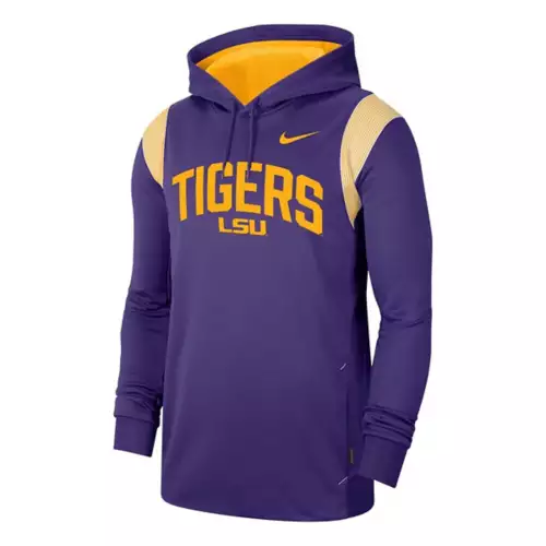 For an extra layer when the temperatures drop, wear the Nike LSU Tigers Sideline Therma Hoodie. With LSU Tigers colors and graphics, you’ll be able to show off your team pride throughout the entire season and year. Made with soft fabric, you’ll stay comfortable throughout the whole game in the Nike LSU Tigers Sideline Therma Hoodie.