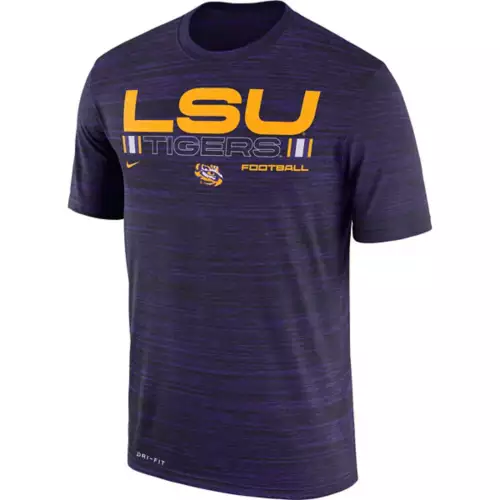 Show everyone who you root for with the Nike LSU Tigers Velocity Legend T-Shirt. Featuring LSU Tigers graphics and colors, you’ll be ready to cheer your favorite College team to victory. Whether you’re heading to the game or just want to show off your favorite team, this LSU Tigers top will leave no doubt where your loyalty lies. Wear your team’s colors and show off your pride with the Nike LSU Tigers Velocity Legend T-Shirt.