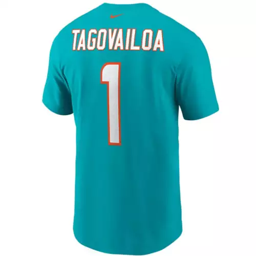 Show everyone who you root for with the Nike Miami Dolphins Tua Tagovailoa #1 Name & Number T-Shirt. Featuring Miami Dolphins graphics and colors, you’ll be ready to cheer your favorite NFL team to victory. Whether you’re heading to the game or just want to show off your favorite team, this Miami Dolphins top will leave no doubt where your loyalty lies. Wear your team’s colors and show off your pride with the Nike Miami Dolphins Tua Tagovailoa #1 Name & Number T-Shirt.