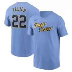 Show everyone who you root for with the Nike Milwaukee Brewers Christian Yelich #22 City Connect Name & Number T-Shirt. Featuring Milwaukee Brewers graphics and colors, you’ll be ready to cheer your favorite MLB team to victory. Whether you’re heading to the game or just want to show off your favorite team, this Milwaukee Brewers top will leave no doubt where your loyalty lies. Wear your team’s colors and show off your pride with the Nike Milwaukee Brewers Christian Yelich #22 City Connect Name & Number T-Shirt.