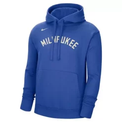 For an extra layer when the temperatures drop, wear the Nike Milwaukee Bucks 2022 City Edition Essential Hoodie. With Milwaukee Bucks colors and graphics, you’ll be able to show off your team pride throughout the entire season and year. Made with soft fabric, you’ll stay comfortable throughout the whole game in the Nike Milwaukee Bucks 2022 City Edition Essential Hoodie.