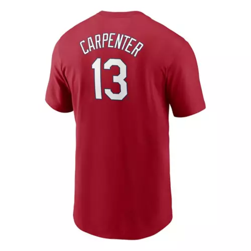 Show everyone who you root for with the Nike St. Louis Cardinals Matt Carpenter Name & Number T-Shirt. Featuring St. Louis Cardinals graphics and colors, you’ll be ready to cheer your favorite MLB team to victory. Whether you’re heading to the game or just want to show off your favorite team, this St. Louis Cardinals top will leave no doubt where your loyalty lies. Wear your team’s colors and show off your pride with the Nike St. Louis Cardinals Matt Carpenter Name & Number T-Shirt.