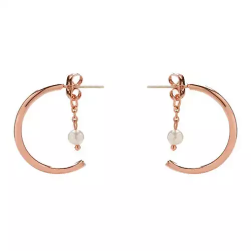 Get all the femme feels in our Floating Pearl Hoop Earrings. This blushing rose gold design features a timeless open hoop, with a dangling chain-and-pearl accent that’ll elevate any ensemble.